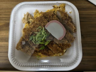 仕方がないから、かつやの「出汁醤油ロースカツ on the 親子丼(竹)」をテイクアウトすることにしたよ。まぁ、ネット予約が不可になっていたから、店に直接行ってテイクアウトしたわけだが。実のところ、親子丼にカツを載せるという頭の悪そうな(笑)メニューも気になっていたから、シュクメルリを食えないならこっちにしよう、という考えになったのだがな。